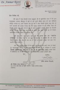 लखनऊ/सीतापुर: ऑल इंडिया माइनॉरिटीज़ फोरम फ़ॉर डेमोक्रेसी के अध्यक्ष और उत्तर प्रदेश के पूर्व कार्यकारी मुख्यमंत्री डॉ. अम्मार रिज़वी ने सीतापुर जनपद के महूदाबाद स्थित नेताजी सुभाष चंद्र बोस स्टेडियम का नाम बदले जाने पर गहरी आपत्ति जताई है। इस संबंध में उन्होंने प्रदेश के खेल एवं युवा कल्याण मंत्री गिरिश चंद्र यादव को पत्र लिखकर हस्तक्षेप की मांग की है।
