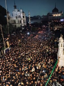 लखनऊ। छोटे इमामबाड़ा हुसैनाबाद में जमाते जाफरी आयोजित अंतिम मजलिस के बाद अजादारों ने अंधेरा करके हजरत फातिमा (स.अ.) का ताबूत मोमबत्तियां जलाकर उठाया गया। ताबूत को इमामबाड़ा परिसर में गश्त कराया गया। यह मंजर देखकर लोगों की आंखों से जारो-कतार आंसू जारी हो गये