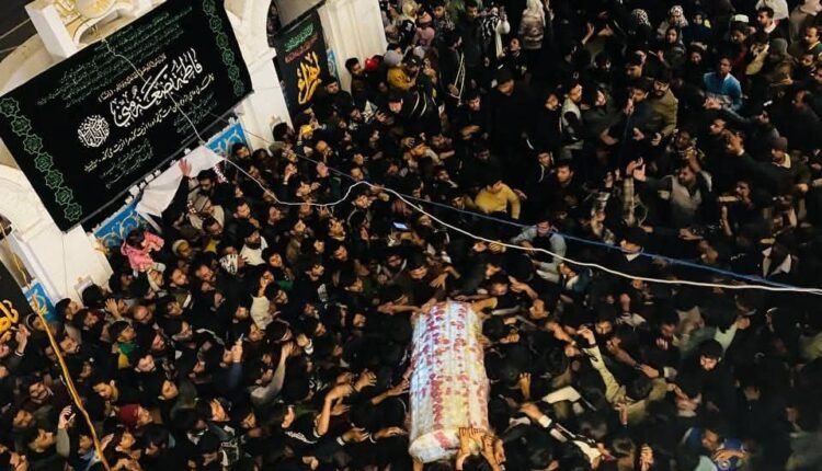 लखनऊ। छोटे इमामबाड़ा हुसैनाबाद में जमाते जाफरी आयोजित अंतिम मजलिस के बाद अजादारों ने अंधेरा करके हजरत फातिमा (स.अ.) का ताबूत मोमबत्तियां जलाकर उठाया गया। ताबूत को इमामबाड़ा परिसर में गश्त कराया गया। यह मंजर देखकर लोगों की आंखों से जारो-कतार आंसू जारी हो गये