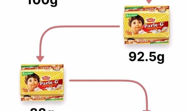मुझे हाल ही में पता चला कि इसके लिए अर्थशास्त्र में एक शब्द है Shrinkflation (सिकुड़न) ।