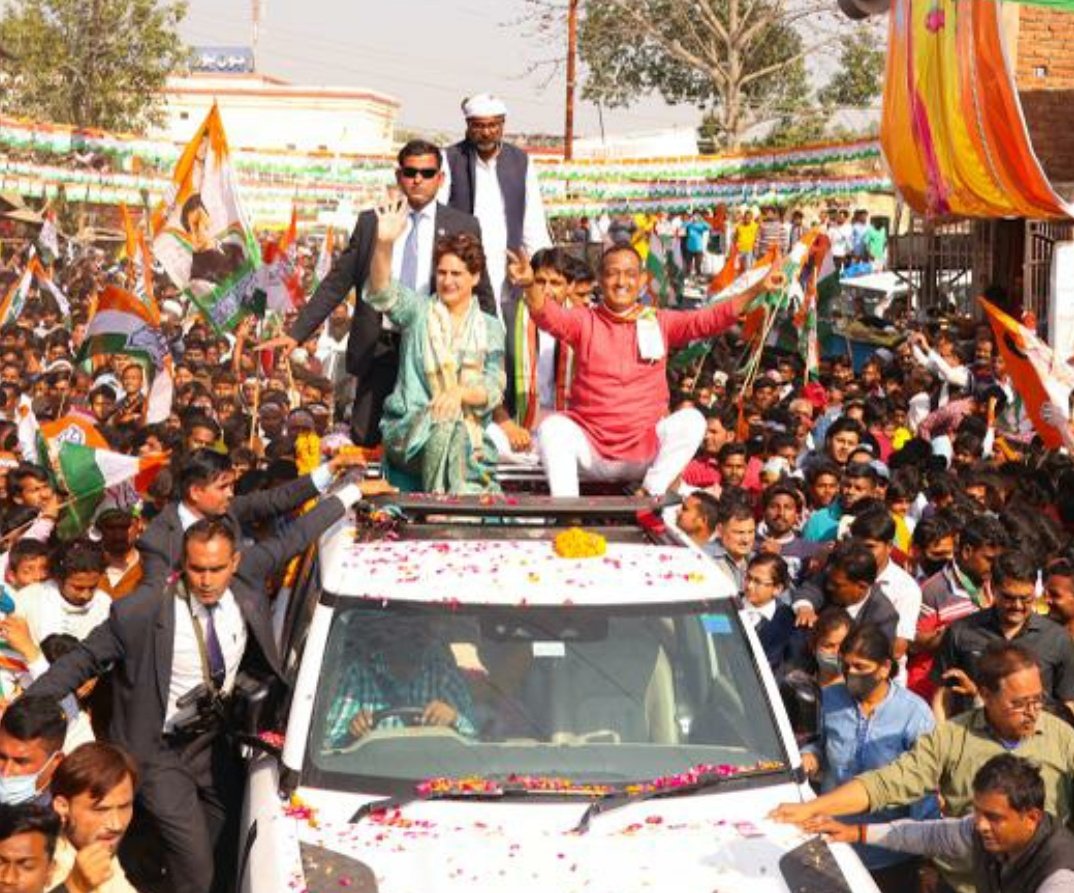 शनिवार को उत्तर प्रदेश में हो रहे चुनाव में सातवें चरण के मतदान के चुनाव प्रचार के अंतिम दिन जौनपुर पहुंची कांग्रेस की राष्ट्रीय महासचिव एवं उत्तर प्रदेश प्रभारी प्रियंका गांधी वाड्रा ने प्रदेश अध्यक्ष अजय कुमार लल्लू के साथ महानगर की सड़कों पर अपना रोड शो निकाला। तकरीबन 1 घंटे से निकाले जा रहे रोड शो के दौरान कार्यकर्ताओं के भीतर भारी उत्साह नजर आ रहा है। जौनपुर जंक्शन से जायसी चौराहे तक निकाले जा रहे प्रियंका गांधी वाड्रा के रोड शो में स्थानीय लोगों का सैलाब उमड़ पड़ा है ।