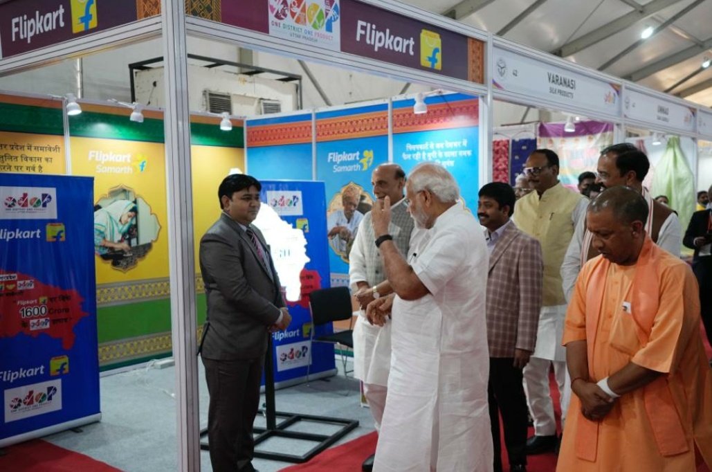 पीएम नरेंद्र मोदी, CM योगी आदित्यनाथ, रक्षामंत्री राजनाथ सिंह और अन्य मंत्रियों ने फ्लिपकार्ट के स्टॉल का निरीक्षण किया।