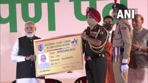 प्रधानमंत्री नरेंद्र मोदी ने झांसी में राष्ट्रीय कैडेट कोर में सिम्युलेटर प्रशिक्षण हेतु राष्ट्रीय कार्यक्रम का शुभारंभ किया झांसी में पीएम मोदी ने आज प्रथम सदस्य के रूप में एनसीसी एल्मुनियाई एसोसिएशन की सदस्यता लेकर इसका शुभारंभ किया। इस एसोसिएशन का उद्देश्य पूर्व और वर्तमान एनसीसी कैडेट्स को एक मंच पर लाना है। इससे पूर्व एनसीसी कैड्टेस को भी कौशल विकास का मौका मिलेगा और वर्तमान कैडेट्स को उनके मार्गदर्शन का लाभ मिलेगा प्रधानमंत्री नरेन्द्र मोदी झांसी पहुंचने के बाद सबसे पहले झांसी के किले में पहुंचे। उन्होंने वहां तिरंगे को सलामी दी। इसके बाद रानी लक्ष्मीबाई की प्रतिमा का अनावरण किया झांसी के किले में बालिका एनसीसी कैैैडेेेट्स की एक टुकड़ी ने पीएम से मुलाकात की। एक बालिका कैडेट ने उन्हें तलवार भेंट की प्रधानमंत्री नरेन्द्र मोदी झांसी पहुंचने के बाद सबसे पहले झांसी के किले में पहुंचे। उन्होंने वहां तिरंगे को सलामी दी। इसके बाद रानी लक्ष्मीबाई की प्रतिमा का अनावरण किया झांसी के किले में बालिका एनसीसी कैैैडेेेट्स की एक टुकड़ी ने पीएम से मुलाकात की। एक बालिका कैडेट ने उन्हें तलवार भेंट की
