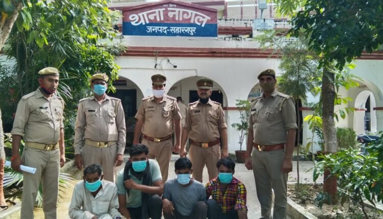सहारनपुर : वरिष्ठ पुलिस अधीक्षक डॉक्टर एस चन्नप्पा एवं पुलिस अधीक्षक ग्रामीण अतुल शर्मा द्वारा निर्गत आदेशो निर्देश के अनुपालन में तथा क्षेत्राधिकारी देवबन्द के निकट पर्यवेक्षण में संदिग्ध व्यक्ति वांछितो की गिरफ्तारी हेतु चलाये जा रहे चैकिंग अभियान के अन्तर्गत थानाध्यक्ष थाना नागल बीनू सिंह के कुशल नेतृत्व में थाना नागल पुलिस टीम द्वारा चोरी की योजना बना रहे हिस्ट्रीशीटर गैंगस्टर गफ्फार पुत्र जुल्फकार निवासी ग्राम भनेडा थाना देवनन्द जनपद सहारनपुर व गय्यूर पुत्र अल्लारखा निवासी ग्राम भनेडा थाना देवबन्द जनपद सहारनपुर, इकलाख पुत्र अय्यूब निवासी ग्राम भनेडा धाना देवबन्द जनपद सहारनपुर मुंतजीर पुत्र रूस्तम निवासी ग्राम गंजेडी बाना नागल जनपद सहारनपुर को नाजायज अस्लाह और कारतूस और चाकू के साथ गजेडी कब्रिस्तान की दीवार के पास से गिरफ्तार किया गया