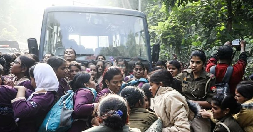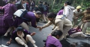 आउटसोर्सिंग पर तैनात इन महिला कर्मचारियों को पुलिस ने रोकने का प्रयास किया लेकिन वह नहीं रुकीं। बाद में पुलिस ने महिला कर्मियों को रजमन बाजार के पास हिरासत में ले लिया