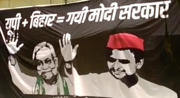यूपी : लखनऊ स्थित सपा कार्यालय के बाहर बिहार के मुख्यमंत्री नीतीश कुमार और सपा अध्यक्ष अखिलेश यादव के पोस्टर लगाए जा रहे हैं। इन पोस्टर के माध्यम से संदेश दिया जा रहा है कि यूपी और बिहार एकजुट होकर भाजपा के लोकसभा सदस्यों की संख्या कम कर दें तो केंद्र से भाजपा की सरकार जा सकती है। सपा नेता आई पी सिंह ने कहा कि पूरे प्रदेश में इस तरह का अभियान चलाया जाएगा।
