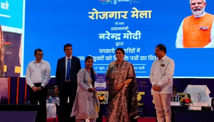 लखनऊ में आयोजित होने वाले रोजगार मेले का उद्घाटन प्रधानमंत्री नरेंद्र मोदी ने रिमोर्ट दबाकर  शुभारंभ किया