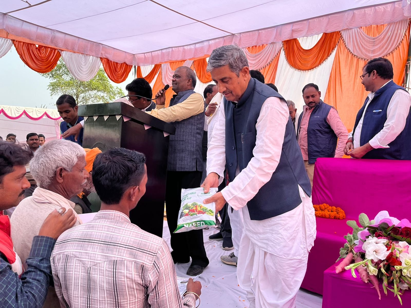बहराइच : राष्ट्रीय कृषि विकास योजनान्तर्गत (उद्यान घटक) अन्तर्गत उद्यान विभाग द्वारा राजकीय औद्यानिक इकाई, गाजीपुर, कैसरगंज में आयोजित गोष्ठी/कृषक मेला में मुख्य अतिथि प्रदेश के सहकारिता मंत्री मुकुट बिहारी वर्मा द्वारा प्रगतिशील कृषक गुलाम मोहम्मद, राम प्रवेश मौर्य, बुधसागर गुप्ता, राम सतीश वर्मा, रामराज वर्मा, राकेश मौर्य, सुनील वर्मा, नरेन्द्र चौधरी, राम फेरन पाण्डेय, अशोक कुमार, राम सेवक वर्मा, चन्द्रमणि मिश्रा, राम विलास, रमेश, ठाकुर प्रसाद मिश्रा, पवन कुमार वर्मा आदि को शाल ओढ़ाकर एवं माल्यापर्ण कर सम्मानित किया गया तथा किसानों में प्याज, शाकभाजी/मसाला बीज के मिनीकिट्स का वितरण भी किया गया।