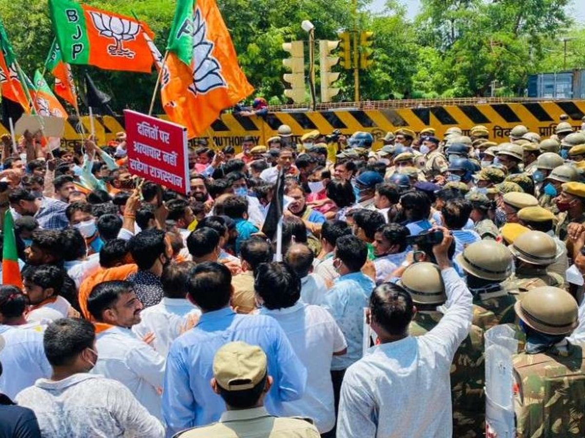कुछ बैरिकेडिंग पर चढ़ गए। पुलिस ने उन्हें खींच-खींचकर नीचे उतारा। कुछ पुलिस बस की छत पर चढ़ने लगे। इस दौरान उनकी पुलिस से तीखी बहस हुई। धक्का-मुक्की हुई। हालात बेकाबू होते देख पुलिस ने प्रदर्शनकारियों को बस में ठूस-ठूसकर भरा और इको गार्डन ले गई।