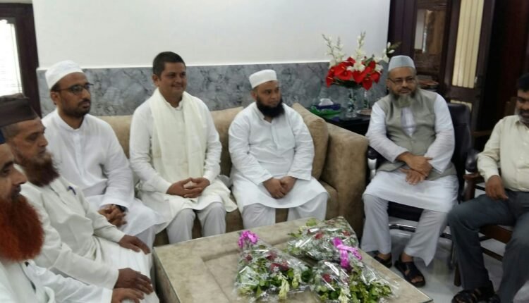 लखनऊ : क़मर अली के सदस्य मदरसा शिक्षा परिषद उत्तर प्रदेश सरकार बनने पर मदरसा आलिया इरफानियाँ चौक लखनऊ में मदरसे के मैनेजर श्री क़ारी इम्तियाज अहमद ने उन्हें बुके देकर व शॉल पहनाकर स्वागत किया।