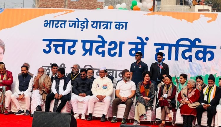 गाज़ियाबाद I राहुल गांधी की भारत जोड़ो यात्रा ने आज गाज़ियाबाद के लोनी बॉर्डर के रास्ते से उत्तर प्रदेश में प्रवेश किया I इस यात्रा के उत्तर प्रदेश में प्रवेश करने के अवसर पर आज हरियाणा प्रदेश कांग्रेस के पूर्व प्रभारी विवेक बंसल के नेतृत्व में अलीगढ से सैंकड़ों कांग्रेसजन चार्टर्ड बसों, निजी वाहनों से लोनी बोर्डर पहुंचे वहां उन्होंने ने राहुल गाँधी और यात्रा में चल रहे भारत यात्रियों का उत्साहवर्धन किया I राहुल गाँधी के पहुँचने से पहले ही विवेक बंसल उनके स्वागत के लिए बनाये गए मंच वरिष्ठ केंद्रीय कांग्रेसजनों के साथ उपस्थित थे I आज लोनी बोर्डर पहुँचने वाले प्रमुख कांग्रेसजनों में कांग्रेस जिलाध्यक्ष ठा० संतोष सिंह, कांग्रेस शहर अध्यक्ष सलाउद्दीन वसी, सेवादल अध्यक्ष शाहिद खान, मुकेश वार्ष्णेय, डूंगर सिंह, का प्रदेश महासचिव आनंद बघेल, युवा शहर अध्यक्ष उज़ैर दिलशाद, अमजद हुसैन, शहीद मलिक सभासद, ठा. सोमवीर सिंह, सीता शर्मा, लता देवी, साबिर अहमद, ज़मीर अहमद, सत्येन्द्र सारस्वत, हुसैन रज़ा, हबीब मलिक, अमीरउददीन लाला, वीरेंद्र दीक्षित, शहजाद हुसैन, जॉनी चौधरी, कामेश शर्मा, रवेन्द्र सिंह, धर्मेन्द्र चौहान, गौरव चौधरी, मौलाना ज़हीर, अलीम खान, कमालुद्दीन, जावेद अली, एजाज़ अल्वी, मोहम्मद शादाब, वसीम मलिक, मोहनलाल पप्पू, शशिकांत वार्ष्णेय, अजमेरी मलिक, साजिद बेग, हुसैन शाह, लियाक़त अली, मोहम्मद मंसूर, हैदर अली, अरबाज़ खान, अशोक कुमार लोधी, दानिश खान, नईम सलीम, शानू अलाउद्दीन, सोनू सिंह, नदीम सलीम, अब्बास शकील, के साथ साथ सैकड़ों अन्य सहयोगी कार्यकर्ता उपस्थित थे I
