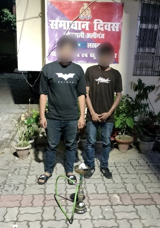 अलीगंज में अवैध हुक्का बार पर छापा, दो युवक गिरफ्तार, नशीला हुक्का बरामद