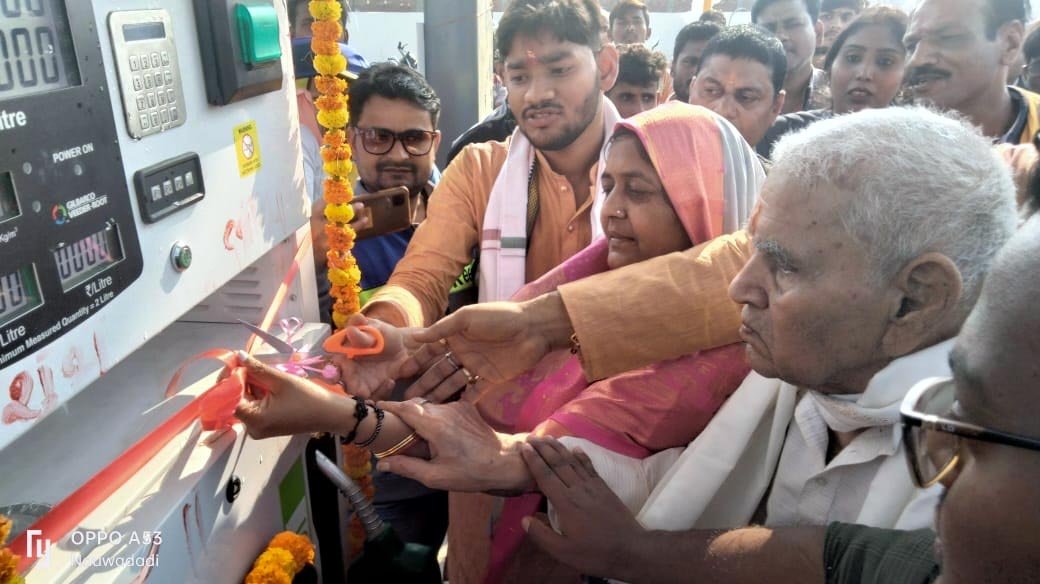 फोटो 04जेएनपी। पेट्रोल पंप का ष्षुभारंभ करती राज्य सभा सांसद श्रीमती सीमा द्विवेदी।