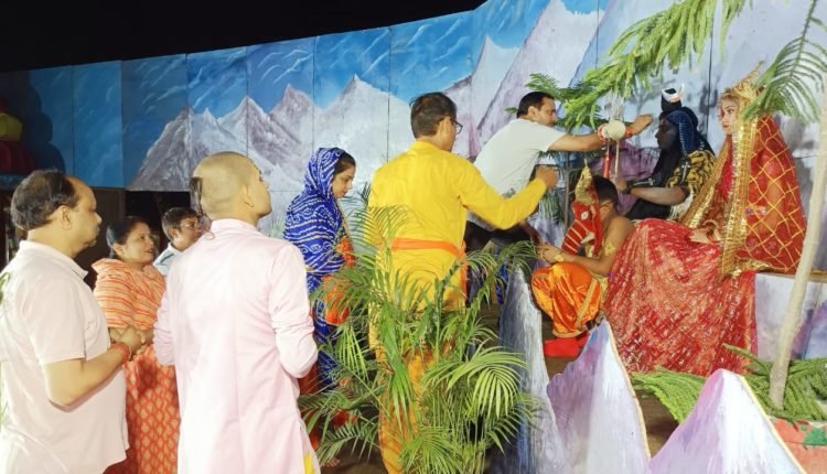 सोनभद्र/अनपरा हिंडालको रेणुसागर पावर डिवीजन रेणुसागर के अध्यक्ष ऊर्जा के.पी.यादव  के  संरक्षण  में  रामलीला समिति रेणुसागर द्वारा रामलीला स्थल पर नवरात्री के प्रथम दिवस  आदिशक्ति माँ दुर्गा का विधिवत पूजा अर्चना व कलस की स्थापना कर रामलीला का सजीव मंचन की तैयारी की गई, मुख्य अतिथि संजय श्रीमाली सपत्नीक द्वारा  भगवान शिव व माता पारवती की आरती वैदिक मंत्रोचार के बीच विधि विधान से कराकर   रामलीला मंचन का शुभारम्भ  कराया,सती मोह व रावण नंदी सम्बाद के साथ मंचन की शुरुआत हुई ।  मुख्य अतिथि श्रीमाली ने कहा की भगवान राम के चरित्र से मानव जीवन में परिवर्तन लाया जा सकता है श्रीराम के वृतांत का मंचन के माध्यम से सीख लेकर हमें स्वयं के चरित्र में आत्मसात करना चाहिए, तदोपरांत स्थानीय कलाकारों द्वारा बिरही राम ,सती मोह व रावण नंदी सम्बाद  का मंचन किया गया, इसके पूर्व दिल्ली से पधारे व्यास नारायण लाल तिवारी द्वारा गणेश पूजा व रामायण की आरती कराई गयी । इस अवसर पर  श्री रामलीला समिति रेणुसागर के अध्यक्ष अनिल सिंघानिया, राजेश सैनी, श्याम सूंदर बियाला, के आर संतोष  आदि मुख्य रूप से  उपस्थित थे।