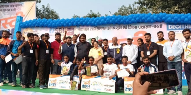 बस्ती | नेशनल एसोसिएशन आफ यूथ एवं जिला प्रशासन के संयुक्त तत्वाधान में 11वां बस्ती मिनी मैराथन में करीब चार हजार धावकों ने दौड़ लगाई। शास्त्री चौक से दौड़ का शुभारंभ सांसद हरीश द्विवेदी व डीएम प्रियंका निरंजन ने हरी झंडी दिखाकर किया। रोडवेज, मालवीय रोड होकर पुन: शास्त्री चौक पर संपन्न हुआ।उत्तराखंड, राजस्थान, हरियाणा, बिहार, मध्य प्रदेश व छत्तीसगढ़ से भी धावक शामिल हुए। 6.50 किमी. दौड़ में महिला वर्ग में बस्ती के वाल्टरगंज की डिंपल सिंह ने 22.35 मिनट में दौड़ पूरा कर प्रथम, प्रयागराज की नीतू कुमारी ने 22.40 मिनट में दौड़ पूरी कर द्वितीय व बस्ती की शशिलता ने 23.02 मिनट में दौड़ पूर कर तृतीय स्थान प्राप्त किया। पुरुष वर्ग में गोरखपुर के रंजीत कुमार पटेल ने 18.45 मिनट में दौड़ पूरा कर प्रथम, वाल्टरगंज के सरवन कुमार ने 19.08 मिनट में द्वितीय व राजस्थान के दिनेश कुमार ने 19.13 मिनट में तृतीय स्थान प्राप्त किया। प्रथम, द्वितीय एवं तृतीय पुरस्कार 11000, 7500 एवं 5100 रुपए प्रदान किए गए।डॉ वीरेंद्र त्रिपाठी ने बताया की मुझे इस मिनी मैराथन में भाग लेने का अवसर मिला | महत्तवपूर्ण यह नहीं है की मै दौड़ में किस स्थान पर रहा बल्कि यह है की 55 वर्ष की आयु में मै दौड़ सकता हूँ |