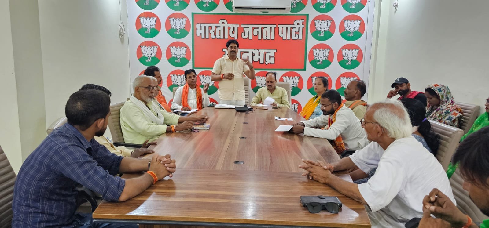 सोनभद्र: ब्यूरो-। भारतीय जनता पार्टी प्रदेश नेतृत्व के आह्वान पर रविवार को मंडल गौरी शंकर मंडल की बैठक भाजपा पार्टी कार्यालय पर बैठक संपन्न हुई इस कार्यक्रम में मुख्य अतिथि भाजपा अनुसूचित जाति मोर्चा काशी क्षेत्र के क्षेत्रीय अध्यक्ष सदर ब्लाक प्रमुख अजीत रावत विशिष्ट अतिथि मंडल प्रभारी जिले के उपाध्यक्ष ओमप्रकाश दुबे जी रहे कार्यक्रम की अध्यक्षता मंडल अध्यक्ष गौरीशंकर राहुल सिंह पटेल द्वारा किया गया है प्रदेश नेतृत्व का बहुत ही महत्वपूर्ण कार्यक्रम मेरा माटी मेरा देश के अंतर्गत जो 8 सितंबर से 13 सेक्टर तक प्रत्येक ग्राम समाज वी नगर पालिका के वार्डो से हर घर से एक चुटकी मिट्टी कलश में लेकर उसको ब्लॉक स्तर पर और नगर पालिका स्तर पर एकत्रीकरण कर बड़े ही दिव्या एवं भव्य कार्यक्रम के साथ प्रदेश स्तर पर पहुंचने का काम किया जाएगा जिसमें हर ग्राम में अमृत वाटिका और शीला फलक भी लगाए जाने का कार्यक्रम चल रहा हैं मुख्य वक्ता के रूप में जिला उपाध्यक्ष मंडल प्रभारी ओमप्रकाश दुबे जी ने बताया यह कार्यक्रम संगठन स्तर पर बहुत ही दिव्या और भव्य रूप से मनाए जाने का कार्यक्रम