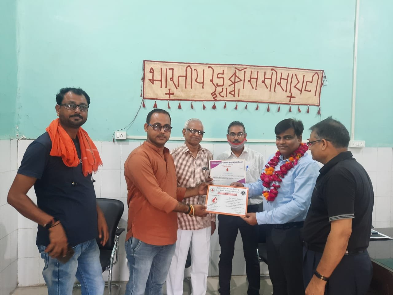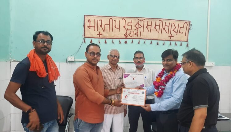 रेडक्रॉस सोसाइटी ने पांच बार रक्तदान करने पर राम यादव को किया सम्मानित