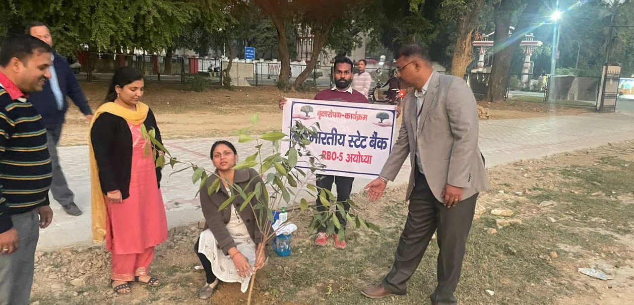 अयोध्या। स्टेट बैंक आफ इंडिया एवं राजकीय महिला पॉलिटेक्निक के तत्वावधान में आज पौधा रोपण का अभियान चलाया गया। यह अभियान भारतीय स्टेट बैंक की ओर से सीआरआर के अन्तर्गत चलाया गया। इस दौरान भारतीय स्टेट बैंक के क्षेत्रीय प्रबंधक संजीव कुमार यादव ने बताया की हमारा बैंक जितना कागज़ और बिजली के रूप में पर्यावरण से लेती है उतना ही पेड़ लगा कर पर्यावरण को वापस करने की कोशिश करती है। जीवन में हर व्यक्ति को अपने हर जन्म दिन पर कम से कम एक पेड़ लगाना चाहिए।राजकीय महिला पॉलिटेक्निक के उद्यान विभाग के लेक्चरर निखिल सिंह ने पेड़ लगाने में विशेष सहयोग दियाद्य उन्होने बताया कि आज कल प्रदुषण के माहौल में पेड़ पौधे ही हमें तमाम बिमारियों से बहकते हैं अतः ज्यादा से ज्यादा पेड़ लगाने चाहिए भारतीय स्टेट बैंक के प्रबंधक सागर ने बताया कि इस वित्त वर्ष में हमारे बैंक ने अयोध्या क्षेत्र में पुरे 1400 पेड़ लगाए हैं जिसमें डीआरसी शाखा में 150 और अवध विश्व विद्यालय में 100, यहाँ 200 और बच्चे पेड़ आचार्य नरेन्द्र देव यूनिवर्सिटी में लगाए गए हैं