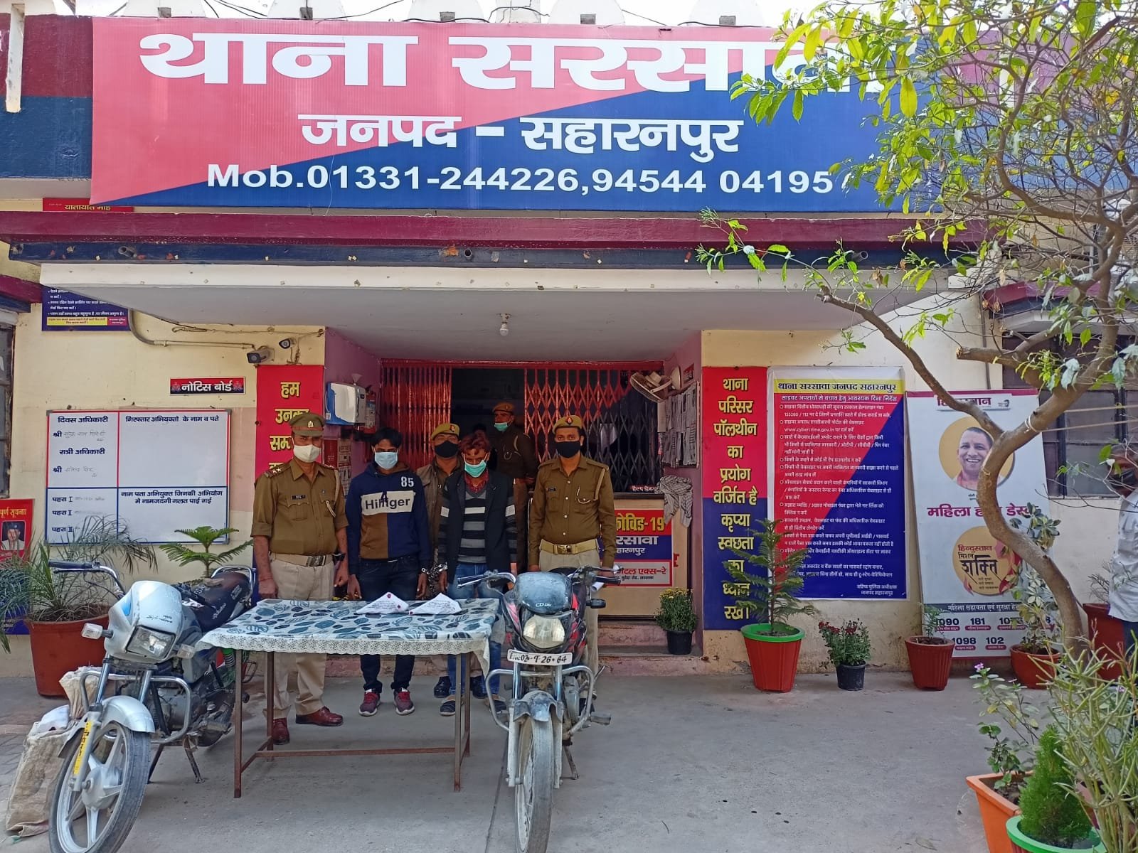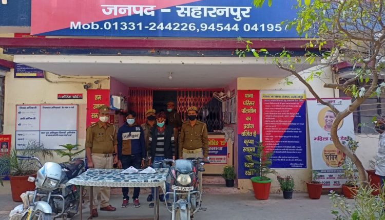 सहारनपुर(सिटीजन वॉयस संवाददाता) : वरिष्ठ पुलिस अधीक्षक आकाश तोमर द्वारा जनपद में अपराधियों के विरुद्व चलाये जा रहे धरपकड़ अभियान के अन्तर्गत, पुलिस अधीक्षक ग्रामीण एवं क्षेत्रधिकारी नकुड़ के कुशल नेतृत्व में थाना सरसावा पुलिस द्वारा मुखबिर की सूचना के आधार पर जंगल ग्राम सुऑखेड़ा के पास हाईवे से लूट की योजना बना रहे 02 शातिर बदमाशों आरिफ पुत्र गालिब निवासी दुमझेड़ा थाना चिलकाना, सहारनपुर व सावेज पुत्र वहीद निवासी दुमझेड़ा थाना चिलकाना, सहारनपुर को मुठभेड़ के बाद 02 अवैध तमंचे 315 बोर, 02 खोखा कारतूस, 04 जिन्दा कारतूस व एक हीरो होण्डा सीडी डीलक्स मोटर साइकिल नं0 एचआर 02 टी-2664 सहित गिरफ्तार करने में महत्वपूर्ण सफलता प्राप्त की गई हैं, पूछताछ करने पर गिरफ्तार अभियुक्तों ने बताया कि वह जंगल ग्राम सुऑखेड़ा के पास हाईवे पर राहगीरो को लूटने की योजना बना रहे थे कि पुलिस द्वारा पकड़े गये। गिरफ्तार अभियुक्त शातिर किस्म के अपराधी है, अब तक जानकारी अनुसार गिरफ्तार अभियुक्तों का आपराधिक इतिहास भी है, पुलिस ने लिखापढ़ी के बाद जेल भेज दिया है।