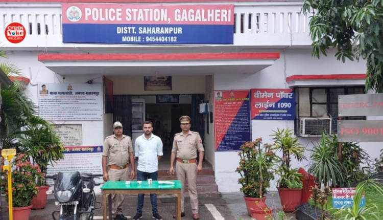 सहारनपुर : वरिष्ठ पुलिस अधीक्षक आकाश तोमर के मार्गदर्शन एवं पुलिस अधीक्षक नगर राजेश कुमार के निर्देशन में चलाये जा रहे वांछित/वारण्टी अभियुक्तो की गिरफ्तारी अभियान व क्षेत्राधिकारी सदर के कुशल पर्यवेक्षण में गागलहेड़ी थानाध्यक्ष सुबे सिंह ने पुलिस टीम के साथ दिनांक 17.06.22 को हुई हत्या में वांछित अभियुक्त अर्पित पुत्र स्व0 अशोक कुमार निवासी कुआहेड़ी थाना मंगलौर जिला हरिद्वार उत्तराखण्ड को भगवानपुर तिराहा से हत्या में प्रयुक्त 01 तमंचा 315 बोर, 01 खोखा कार0 नाल में फंसा, 02 जिन्दा कार0 315 बोर, 01 मोटर साइकिल काली पल्सर सीज शुदा अन्तर्गत धारा 207 एमवीएक्ट सहित गिरफ्तार किया गया, आवश्यक कार्यवाही करते हुए अभियुक्त को मा0 न्या0 के समक्ष पेश कर जेल भेज दिया गया।