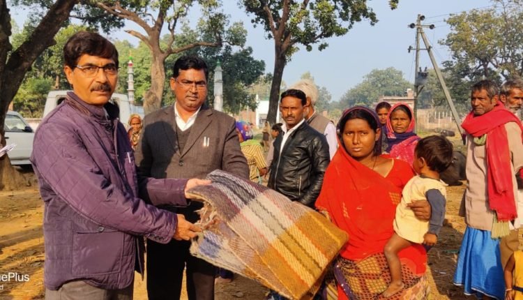 एसडीएम व तहसीलदार ने गरीबों को बांटे कंबल