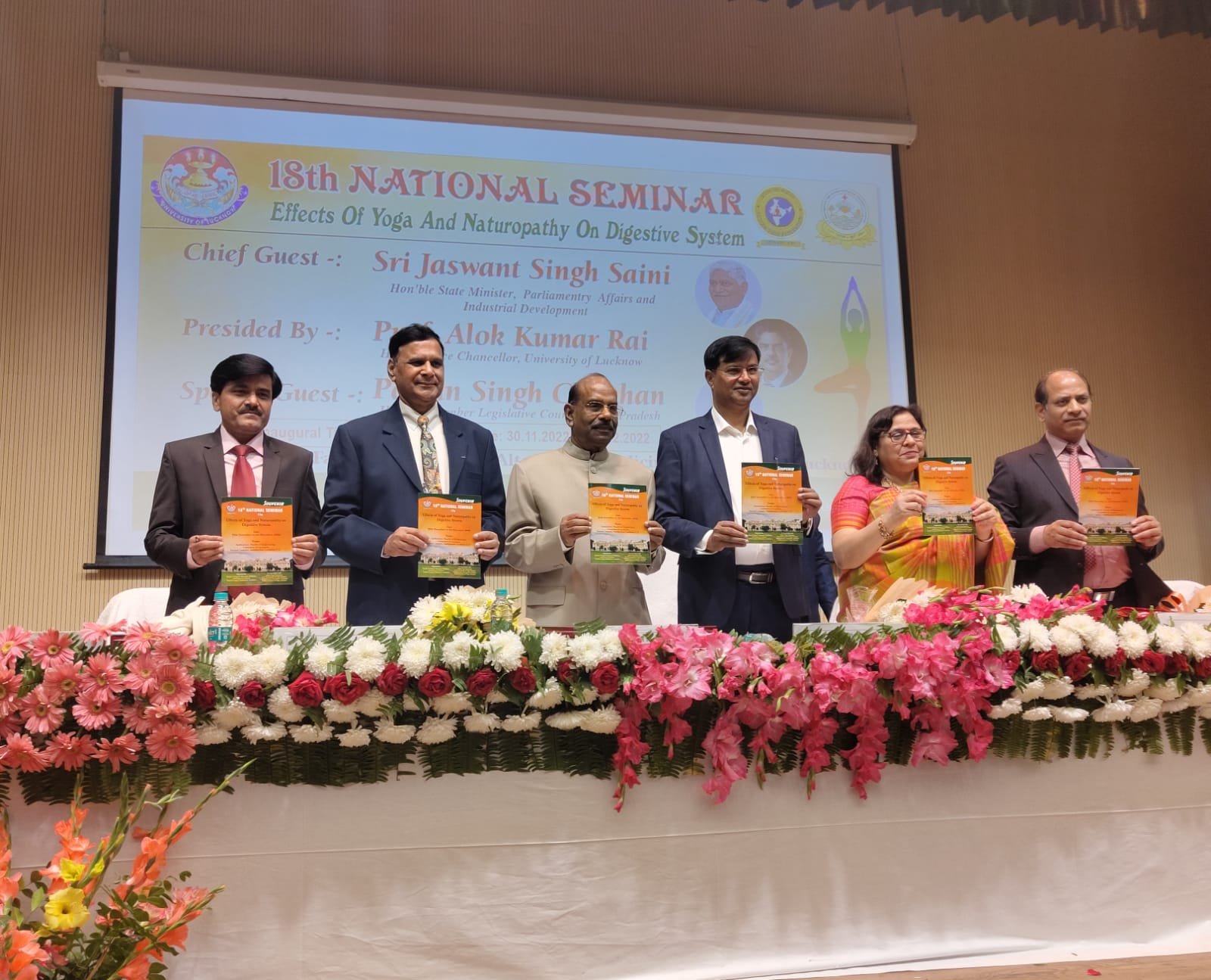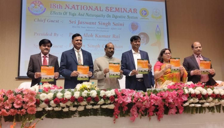 लखनऊ। लखनऊ विश्वविद्यालय के फैकल्टी आॅफ योग एंड अल्टरनेटिव मेडिसिन एवं इंडियन योग फेडरेशन तथा यूपी नेचुरोपैथी एंड योग टीचर्स एंड फिजिशियन एसोसिएशन के संयुक्त तत्वाधान में पाचन तंत्र में योग एवं प्राकृतिक चिकित्सा का प्रभाव विषय पर दो दिवसीय 18वें राष्ट्रीय सेमिनार का आयोजन किया गया।कार्यक्रम का उद्घाटन मुख्य अतिथि पवन सिंह चौहान, सदस्य विधान परिषद, उप्र.ने किया।इसके पश्चात उन्होंने कहा कि योग हमारे सम्पूर्ण शरीर के लिए उपयोगी है। कार्यक्रम की अध्यक्षता प्रो.पूनम टंडन (अधिष्ठाता, छात्र कल्याण,लविवि) ने छात्रों के लिए योग की उपयोगिता बताई।इस मौके पर अतिथियों का स्वागत भाषण फैकल्टी के इंचार्ज प्रो. नवीन खरे ने दिया। कार्यक्रम के संचालक डॉ.अमरजीत यादव (समन्वयक, योग एवं वैकल्पिक चिकित्सा संकाय) ने पाचन तंत्र को स्वस्थ रखने के लिए योगासन- वज्रासन, पवनमुक्तासन, कोणासन, मार्जरी आसन, वक्रासन, विपरीतकरणी आसन और अनुलोम विलोम, भ्रामरी प्राणायम एवं ध्यान के माध्यम से पेट सबन्धी समस्त रोगों के लिए फायदेमंद है। पतंजलि यूनिवर्सिटी से आये अस्सिटेंट प्रोफेसर निधीश यादव ने बताया कि योग में रिसर्च की आवश्यकता तथा योग के वैज्ञानिक महत्व पर अपने विचार प्रस्तुत किये। डॉ. राजेन्द्र प्रसाद,पूर्व निदेशक योग पर पक्ष रखते हुए तथा उत्तर प्रदेश में डॉ. अमरजीत यादव द्वारा योग एवं प्राकृतिक चिकित्सा के उन्नयन के संबंध में किये गए कार्यों एवं फैकल्टी के स्थापना आदि किये गए कार्यों के बारे में बताया। इसके पश्चात प्रो. एच.एच. अवस्थी बीएचयू , वाराणसी ने योग के साईंटिफिक उपादानों पर विस्तृत चर्चा तथा योग के विकास के लिये एकेडेमिक रिसर्च आदि करने पर विशेष बल दिया।वहीं, डॉ. विजय कुमार ओहरी ने विभिन्न भारतीय संस्कारों पर प्रकाश डालते हुए पेट संबंधी रोगों में योग की महत्ता पर बताया कि मानसिक व आध्यात्मिक विकास की नींव पेट के स्वस्थ होने से ही संभव है। सरल आसनों का अभ्यास करना चाहिए एवं प्राणायाम की महत्ता को बताते हुए इसके पश्चात प्रो. एच.एच. अवस्थी पूर्व विभागध्यक्ष, रचना शारीर, बीएचयू ने बताया की उदर के विकारों के साथ मानशिक, तनाव, अनिद्रा आदि में योग की भूमिका तथा योगासन- सुप्तबन्धकोनासन, बन्धकोनासन, सेतुबंधासन, नाड़ी शोधन प्राणायाम के माध्यम से उदर विकारों को कैसे कम किया जाए। वहीं, सिक्किम से आये अतिथियों के द्वारा पेट के रोगों के लिए योग के द्वारा शरीर मे कब्ज, पाचन संबंधी योग से कितना रिलेक्स तथा पाचन को बेहतर बनाया जा सकता है उसके लिए वीरभद्रासन, वृक्षासन, वज्रासन, मत्स्य क्रीड़ासन, ताड़ासन, कटिचक्रासन, अर्ध एवं पूर्ण तितली आसान, भ्रामरी, अनुलोम विलोम प्राणायाम तथा अपान, ज्ञान, आकाश मुद्र