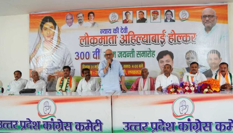 लखनऊ: लोकमाता अहिल्याबाई होल्कर जी की 300वीं जयंती के अवसर पर आज प्रदेश कांग्रेस कार्यालय में एक भव्य संगोष्ठी आयोजित की गई, जिसकी अध्यक्षता प्रदेश कांग्रेस अध्यक्ष एवं पूर्व मंत्री अजय राय ने की। इस कार्यक्रम का संयोजन निवर्तमान प्रदेश महासचिव सुभाष पाल एवं सह संयोजक संदीप पाल ने किया जबकि संचालन पूर्व प्रदेश सचिव प्रतिभा अटल पाल ने किया।संगोष्ठी की शुरुआत अहिल्याबाई होल्कर जी के चित्र पर माल्यार्पण और श्रद्धासुमन अर्पित करके हुई, जिसमें प्रदेश कांग्रेस अध्यक्ष अजय राय के साथ पूर्व मंत्री नसीमुद्दीन सिद्दीकी, पूर्व मंत्री राजबहादुर सिंह, पूर्व विधायक सतीश अजमानी, निवर्तमान प्रदेश उपाध्यक्ष केशव चन्द्र यादव, सुभाष पाल, प्रतिभा अटल पाल और संदीप पाल धनगर ने भी भाग लिया।प्रदेश कांग्रेस अध्यक्ष अजय राय ने संगोष्ठी को संबोधित करते हुए बताया कि अहिल्याबाई होल्कर का जीवन महिलाओं, दलितों, वंचितों और किसानों के कल्याण के लिए समर्पित था। उन्होंने समाज की कुरीतियों के खिलाफ आवाज उठाई और महिलाओं के उत्थान के लिए विशेष कार्य किए। अहिल्याबाई जी ने शिक्षा के क्षेत्र में महिलाओं को जागरूक करने के साथ-साथ सनातन संस्कृति के उत्थान और महिला सशक्तिकरण की दिशा में महत्वपूर्ण योगदान दिया।अजय राय ने बताया कि लोकमाता अहिल्याबाई ने भारत के कई प्रसिद्ध तीर्थों पर मंदिर, घाट, कुएं और बावड़ियों का निर्माण करवाया, मार्ग बनाए और एक आदर्श न्याय व्यवस्था स्थापित की। उनका योगदान आने वाली पीढ़ियों के लिए प्रेरणा स्रोत है। उन्होंने पाल समाज से अपील की कि वह राजनीति में सक्रिय होकर अपने अधिकारों के लिए संघर्ष करें, जिस राह पर अहिल्याबाई जी ने समाज को उठाया, उसी रास्ते पर चलकर कांग्रेस के नेतृत्व में एकजुट होकर आगे बढ़ें।