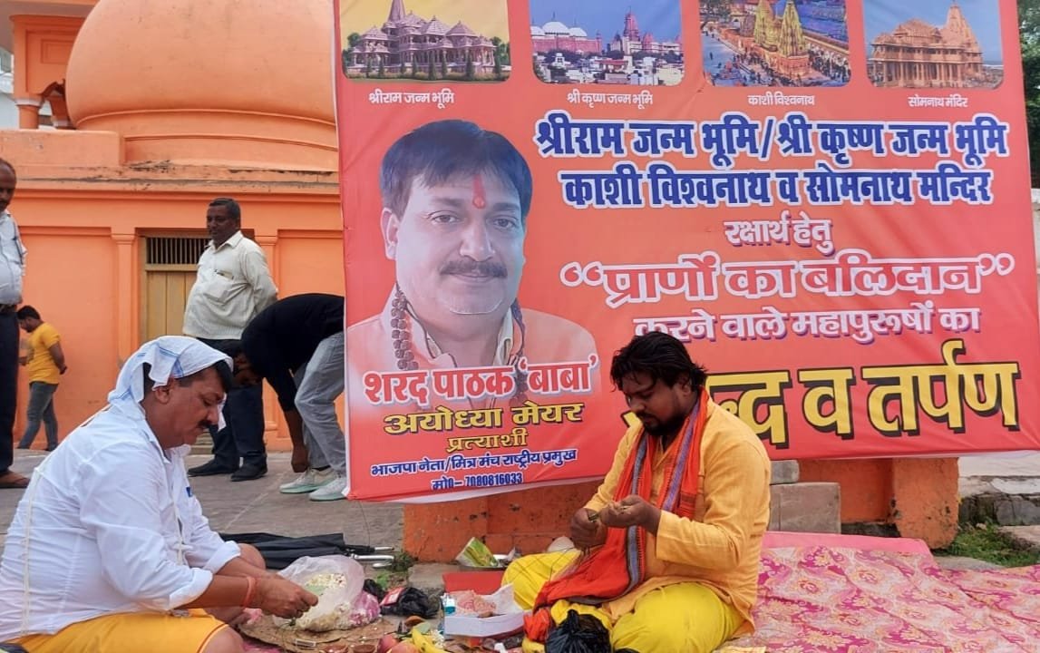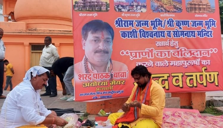 अयोध्या। अयोध्या में मां सरयू के पावन तट ‘झुमकी घाट’ पर श्री राम जन्मभूमि/श्री कृष्ण जन्मभूमि/काशी विश्वनाथ व सोमनाथ मंदिर के लिए एवं सनातन धर्म की रक्षा के लिए, संस्कृति की रक्षा के लिए, अपने प्राणों की आहुति देने वाले सभी कारसेवकों/महापुरुषों का “श्राद्ध व तर्पण” भाजपा नेता अयोध्या मेयर पद प्रत्याशी शरद पाठक “बाबा” ने किया।