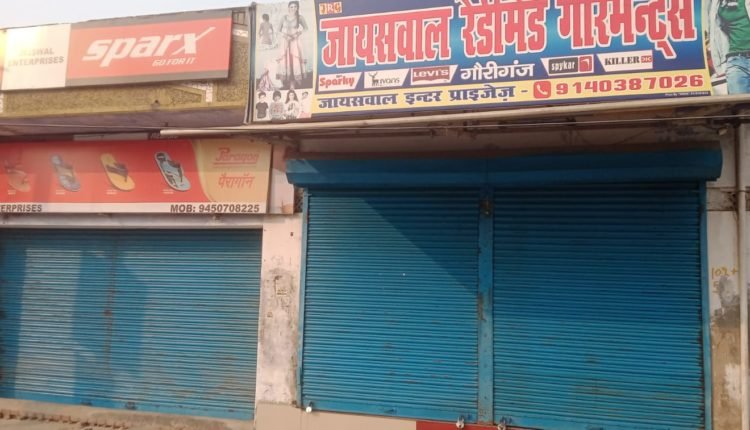 चाय पान की दुकानों को छोड़ सभी दुकानों में लगा ताला