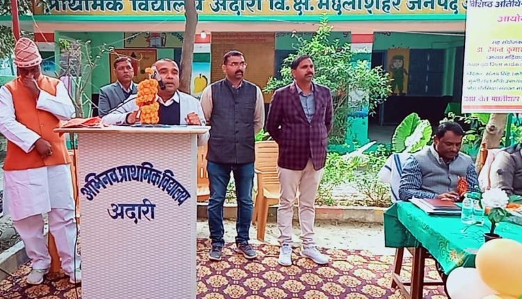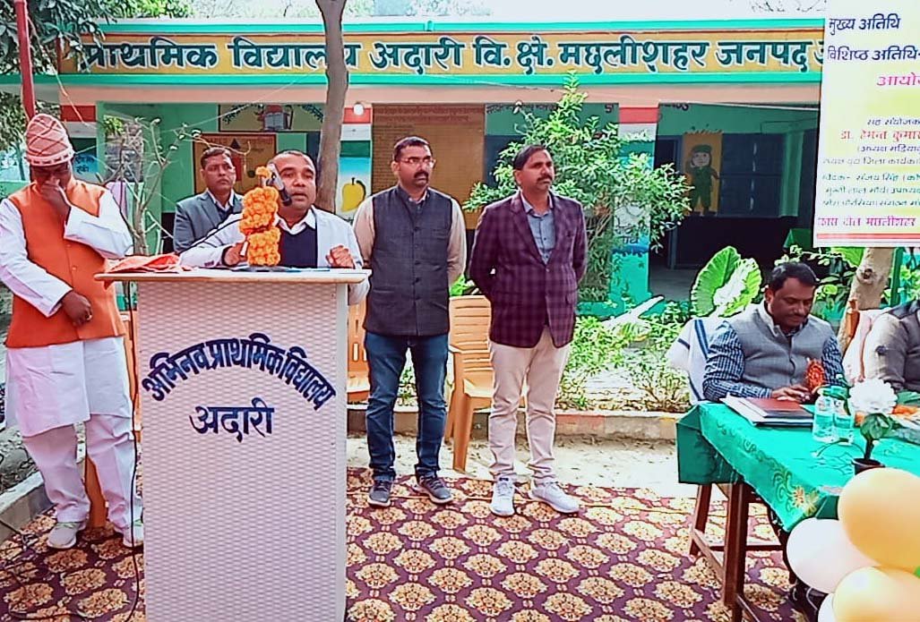 जौनपुर : विकास खण्ड मछलीशहर के प्राथमिक विद्यालय अदारी में बुधवार को स्मार्ट क्लास रूम एवं शैक्षिक उन्नयन संगोष्ठी का आयोजन इसी विद्यालय के सेवानिवृत्त प्रधानाध्यापक एवं राज्यपाल पुरस्कार से सम्मानित अवधेश सिंह की अध्यक्षता में यूनाइटेड टीचर एसोसिएशन (यूटा) शाखा मछलीशहर के तत्वाधान में आयोजित किया गया। संचालन यूटा के वरिष्ठ उपाध्यक्ष चन्द्रेश यादव ने किया। संगोष्ठी को संबोधित करते हुए मुख्य अतिथि जिला बेसिक षिक्षा अधिकारी गोरखनाथ पटेल ने कहा कि आर्थिक विकास के लिए मानव संसाधन का विकास जरुरी है और प्राथमिक शिक्षा मानव संसाधन विकास के लिए सबसे महत्वपूर्ण है, अध्यापक को सबसे अधिक नैतिक मूल्यों पर ध्यान देना चाहिए।