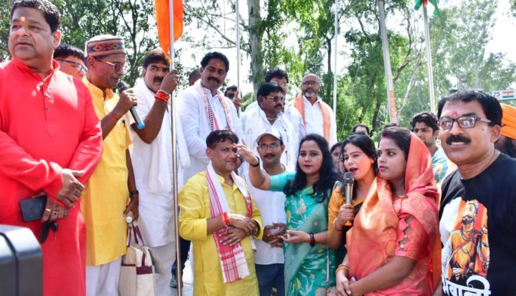 स्वतंत्रता सेनानी बलरामदास केसरवानी की पौत्रवधू वैशाली केसरवानी, प्रमिला जायसवाल ने भ्रमण दल की अगुआई कर रहे विजय शंकर चतुर्वेदी व सनोज तिवारी को चंदन तिलक लगाकर शुभकामनाएं दी तो पूरा परिसर जय भवानी – जय शिवाजी के उदघोष से गूंज उठा।
