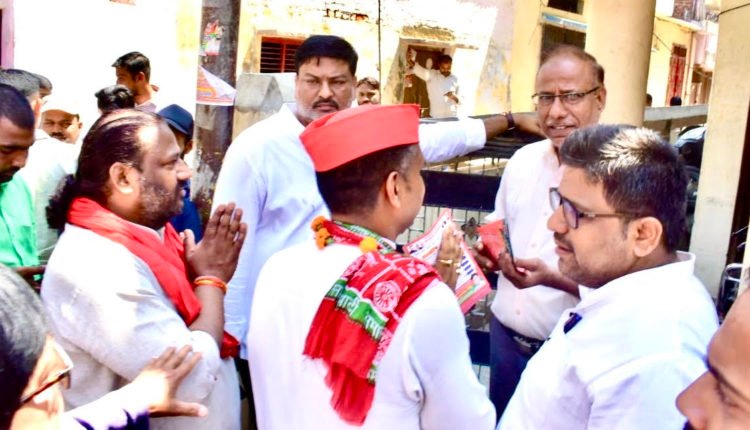 घर-घर जनसंपर्क करते सपा प्रत्याशी आशीष पांडेय