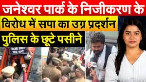 जनेश्वर पार्क के निजीकरण के विरोध में सपा का उग्र प्रदर्शन