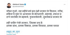सपा सुप्रीमो अखिलेश यादव का ट्वीट