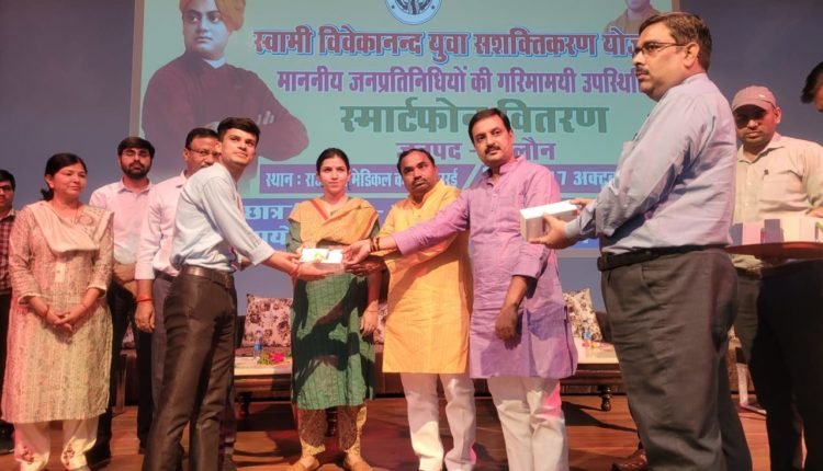 उरई (जालौन)।तकनीकी हमारे जीवन को बेहतर बनाने का एक बहुत बड़ा साधन है यह बात आज दिनांक 17 अक्टूबर 2022 को जनपद जालौन स्थित उरई नगर में राजकीय मेडिकल कॉलेज के ऑडिटोरियम में माननीय जिला पंचायत अध्यक्ष उरई डॉ.घनश्याम अनुरागी ने कही। ध्यातव्य है कि उत्तर प्रदेश शासन के स्वामी विवेकानंद युवा सशक्तिकरण योजना के अंतर्गत जनपद जालौन के उरई स्थित दयानंद वैदिक कॉलेज के 500 छात्र छात्राओं को मोबाइल फोन स्मार्टफोन का वितरण किया गया. यह कार्यक्रम राजकीय मेडिकल कॉलेज के विशाल ऑडिटोरियम में संपन्न हुआ. श्री घनश्याम अनुरागी ने इस अवसर पर छात्र छात्राओं को उत्तर प्रदेश शासन के स्मार्टफोन वितरण योजना की विशेषताओं की विस्तृत जानकारी प्रदान की।इस कार्यक्रम में कई प्रमुख गणमान्य लोग भी उपस्थित रहे, जिसमें उत्तर प्रदेश शासन के जल शक्ति मंत्री स्वतंत्र देव सिंह के प्रतिनिधि श्री अरविंद सिंह चौहान, जिलाधिकारी महोदया श्रीमती चांदनी सिंह ,मुख्य विकास अधिकारी डॉ अभय कुमार श्रीवास्तव, आईटीआई की प्राचार्य श्रीमती नूपुर कश्यप, ई डी ओ श्री पुष्पेंद्र सेगर, दयानंद वैदिक कॉलेज के प्राचार्य प्रोफेसर राजेश चंद्र पांडे, स्मार्टफोन वितरण प्रभारी डॉ राजेश पालीवाल एवं महाविद्यालय के कई शिक्षक एवं शिक्षणेत्तर कर्मचारी तथा छात्र-छात्राएं उपस्थित थे .इस अवसर पर छात्र छात्राओं को संबोधित करते हुए जिलाधिकारी जालौन श्रीमती चांदनी सिंह ने यह आशा व्यक्त की कि छात्र-छात्राएं इस तकनीकी माध्यम से अपने जीवन को और अधिक बेहतर बनाने का प्रयास करेंगे .इस अवसर पर मुख्य विकास अधिकारी डॉ अभय कुमार श्रीवास्तव जी ने उत्तर प्रदेश शासन के इस बृहत अभियान की विस्तृत जानकारी भी छात्र छात्राओं के साथ साझा की।