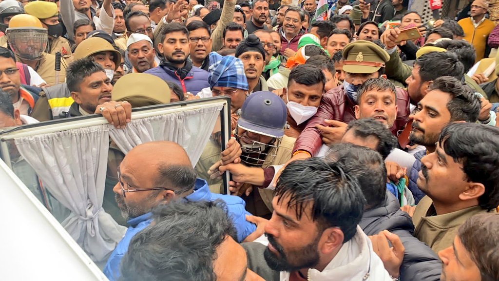 इस पर अजय कुमार लल्लू कार्यकर्ताओं के साथ रास्ते में धरने पर बैठ गए। जिससे वहां जाम लग गया। जाम हटवाने के लिए पुलिस ने अजय कुमार लल्लू को गिरफ्तार कर लिया।
