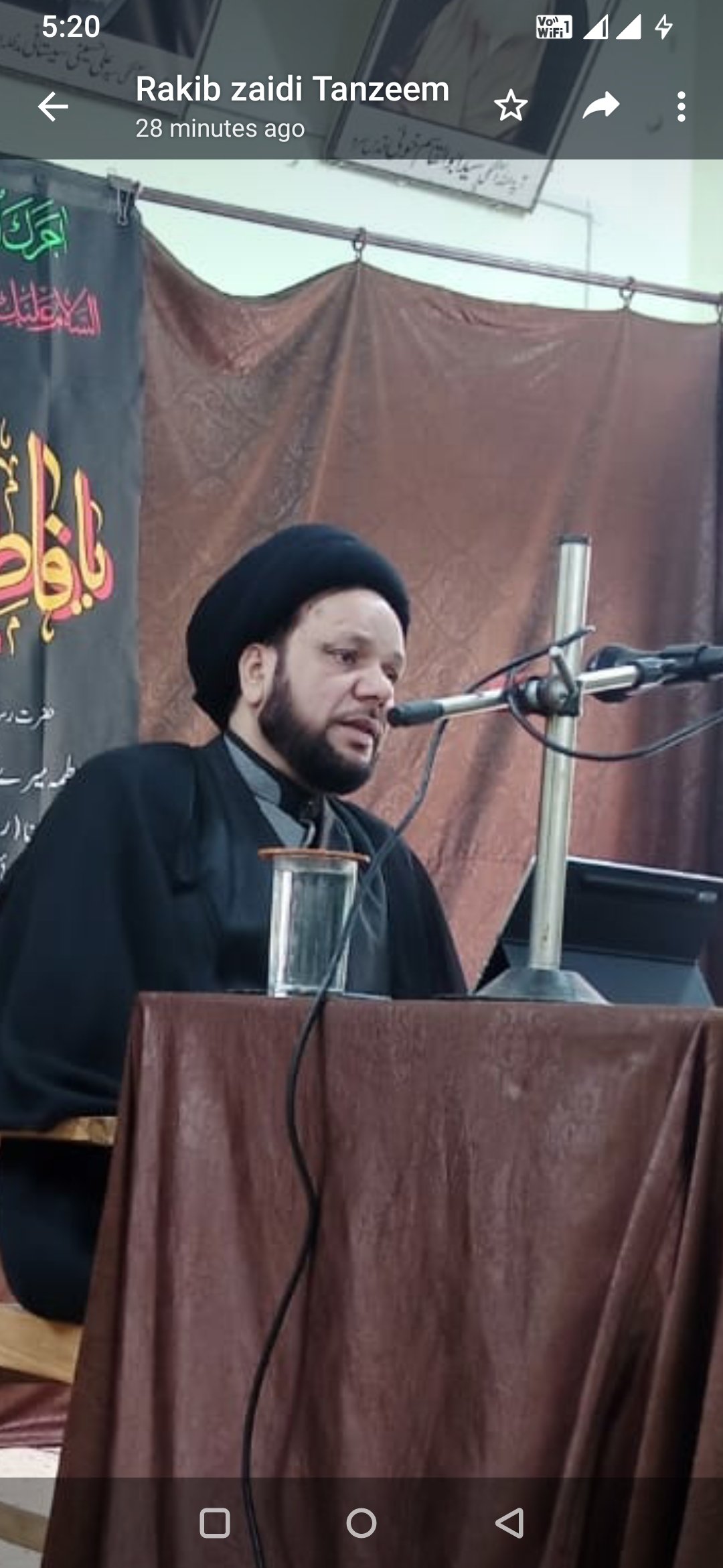 अंत में मौलाना सय्यद रज़ा हैदर ज़ैदी ने हज़रत फ़ातिमा ज़हरा स०अ० की इल्मी सीरत के कुछ पहलुओं की ओर इशारा किया और शहज़ादी कौनैन के मसाएब बयान किए।
