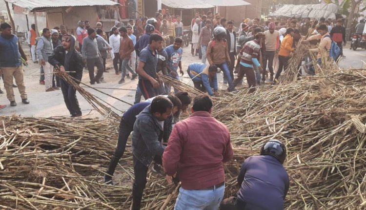 पुलिस ने क्रेन व ग्रामीणों के सहयोग से गन्ने को हटवाकर बचाई जान