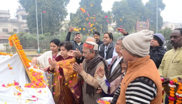 लखनऊ : प्रतिवर्ष की भांति स्वामी विवेकानन्द जी के जन्मदिवस पर झंडेवाला पार्क अमीनाबाद में कार्यक्रम के आयोजक पूर्व नेता विधान परिषद विंध्यवासिनी कुमार साथ में महापौर संयुक्त भाटिया जी, सहित अनेक गणमान्य लोगो ने स्वामी विवेकानंद जी की प्रतिमा पर पुष्प अर्पित किया। इस अवसर पर कार्यक्रम के आयोजक पूर्व नेता विधान परिषद विंध्यवासिनी कुमार ने कहा की इस पार्क से भारत की आजादी के आंदोलनों के कई संस्मरण जुड़े हुए है, उन्होंने महापौर का धन्यवाद किया कि नगर निगम द्वारा ऐतहासिक पार्क के तीन प्रवेश द्वार के नाम स्वामी विवेकानंद द्वार, इस पार्क का निर्माण करने वाले बाबू गंगा प्रसाद द्वार और शहीद गुलाब सिंह लोधी द्वार नगर निगम द्वारा कर दिया गया है। विन्ध्यवासिनी कुमार ने महापौर से मांग की कि इस पार्क में एक पुस्तकालय बने जिसमे देश की आजादी से जुड़े साहित्य और स्वामी विवेकानंद जी के जीवन से जुड़े संस्मरण भाषण का संकलन हो साथ ही पार्क में स्वामी विवेकानंद जी द्वारा शिकागो में दिए गए प्रथम 4 मिनट के भाषण का शिलापट्ट बने ।