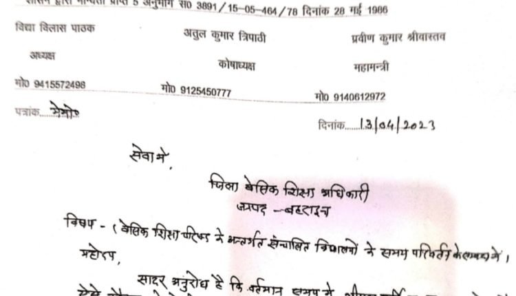 बेसिक शिक्षा परिषद के अंतर्गत संचालित विद्यालयों का समय परिवर्तित करके बच्चों को राहत दिए जाने की मांग की है ।जिला अध्यक्ष विद्या विलास पाठक ने बताया कि प्रांतीय संयुक्त मंत्री सिराजुद्दीन न्यूटन जिला मंत्री शत्रुघ्न वर्मा मंडल ऑडिटर भूपेंद्र प्रसाद श्रीवास्तव के सुझाव पर जिला बेसिक शिक्षा अधिकारी को पत्र दिया गया है।