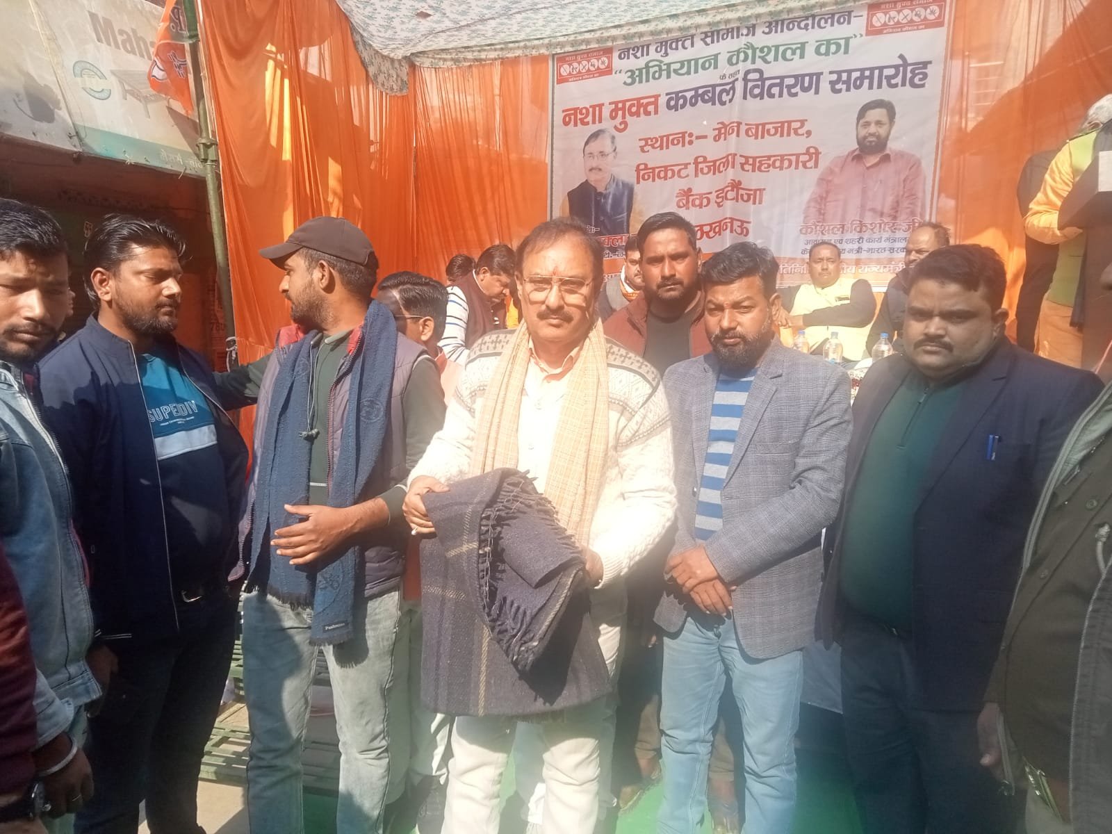 नगर पंचायत इटौंजा में आज स्थानीय विधायक योगेश शुक्ल ने 500 जरूरतमंदों को कंबल वितरित किए कम बलों की व्यवस्था तहसील बीकेटी के तहसीलदार ने की थी इससे नगर पंचायत इटौंजा के 10 वार्डों के जरूरतमंद लाभान्वित हुएइस अवसर पर विधायक ने कहा सभी गरीबों को प्रधानमंत्री आवास योजना का लाभ मुहैया कराया जाएगा इसके अलावा निर्बल व किसानों को सरकारी योजनाओं की जानकारी दी जाएगी तथा उन्हें इन योजनाओं से लाभान्वित किया जाएगा इस अवसर पर मलिहाबाद विधायक जय देवी नायब तहसीलदार अतुल मिश्रा संदीप शुक्ला मिथिलेश कमल अवस्थी सुधाकर अवस्थी तथा अन्य गणमान्य नागरिक उपस्थित थे