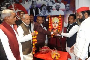 समाजवादी पार्टी मुख्यालय में धरती आबा बिरसा मुंडा की 150वीं जयंती मनाई गई, अखिलेश यादव की ओर से श्रद्धांजलि अर्पित
