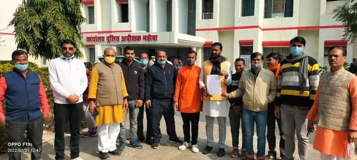अभी 14 जनवरी को सुबह लगभग आठ बजे कोतवाली पुलिस द्वारा एक स्कार्पियो कार जिसमें टीवी प्रेस लिखा हुआ था जिसमें मोहम्मद सलीम पुत्र अज्ञात निवासी महोबा एवं तीन अज्ञात लोगों के पास से पुलिस ने दस बोरी लगभग दो कुंतल मांस पकड़ा था। पुलिस के द्वारा सलीम को तुरंत छोड़ दिया गयाएवं अज्ञात तीन लोगों को एक दिन बाद छोड़ दिया गया। किसी भी प्रकार की ठोस कार्यवाही नहीं की गई। अतः महोबा जिले के सभी हिंदू संगठन इस घटना से आक्रोशित है। इस प्रकरण को संज्ञान में लेकर सभी आरोपियों को पकड़कर जेल भेजा जाए और उचित धाराओं में मुकदमा दर्ज किया जाए।
