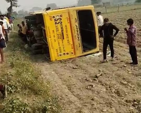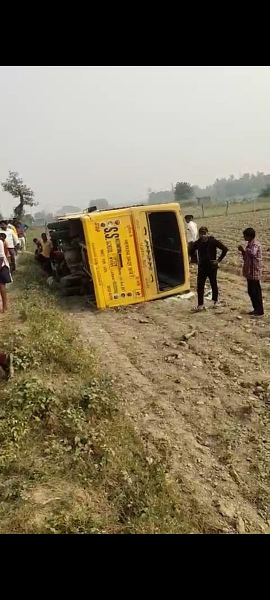 लखनऊ में बक्शी का तालाब स्थित एसएस स्कूल की बस अनियंत्रित होकर पलटी