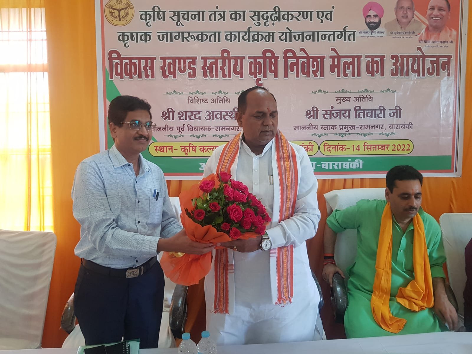 कार्यक्रम में उपस्थित उपनिदेशक कृषि श्रवण कुमार सिंह सिंह ने कृषि विभाग के द्वारा संचालित योजनाओं के बारे में विस्तार से जानकारी देते हुए कहा कि शासन के द्वारा किसानों की आमदनी बढ़ाने उनके उत्पाद की गुणवत्ता सुधारने पर निरंतर कार्य किया जा रहा है। इसके लिए हम सभी को प्राकृतिक तरीका अपनाना होगा। जिला कृषि अधिकारी संजीव कुमार ने भी विस्तार से अपने विचार रखें। तथा कृषि विशेषज्ञ पिंकी चौहान ने किसानों को खेती के बारे में विस्तार से जानकारी दी। पूर्व विधायक शरद कुमार अवस्थी एवं ब्लाक प्रमुख संजय तिवारी ने कृषि निवेश मेले में लगाए गए स्टालों का अवलोकन किया। और उपस्थित किसानों को दो दो किलो सरसों का बीज वितरित किया गया। नवनिर्मित किसान कल्याण केंद्र में आयोजित इस कार्यक्रम का शुभारंभ पूर्व विधायक एवं ब्लाक प्रमुख ने संयुक्त रूप से दीप प्रज्जवलित करके किया।