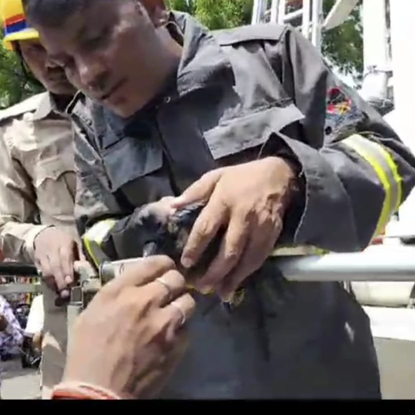 हजरतगंज इलाके में फायर ब्रिगेड की हाईड्रोलिक गाड़ी ने किया कौवे का रेस्क्यू ऑपरेशन।।