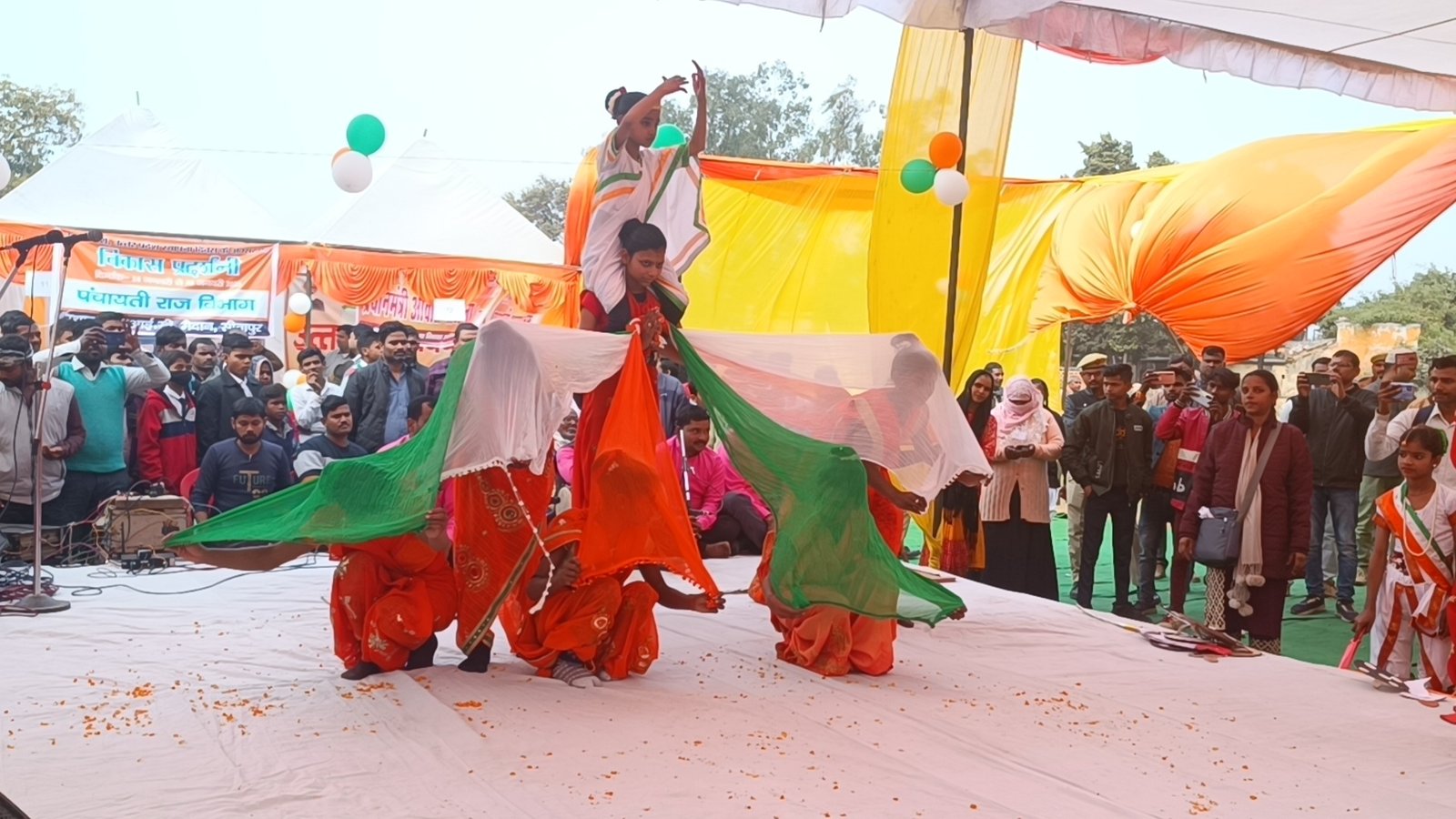 राज्यमंत्री कारागार उ0प्र0 शासन सुरेश राही ने अपने सम्बोधन में कहा कि पिछली सरकारों में उ0प्र0 जहां था, वहीं रह गया था। लेकिन आज उ0प्र0 वर्तमान सरकार में आगे की ओर अग्रसर है। कोरोना काल के समय बहुत से ऐसे लोग थे जो नौकरी के लिये बाहर गये थे, परन्तु अब सरकार रोजगार के अवसर उद्योगों एवं व्यापार के माध्यम से प्रदान कर रही है। उन्होंने कहा कि उ0प्र0 में लोग निवेश करने के लिये भी तैयार है। इससे और अधिक लोगों को रोजगार मिलने की सम्भावनाएं बढ़ जायेगी और नौकरी के लिये अन्य कहीं प्रदेशों में नहीं जाना पड़ेगा। इस अवसर पर हिन्दू कन्या पाठशाला की छात्राओं द्वारा सरस्वती वन्दना गीत, आर कन्या इण्टर कालेज की छात्राओं द्वारा स्वागत गीत, प्राथमिक विद्यालय मिश्रापुर की छात्राओं द्वारा रानी लक्ष्मीबाई पर वीरांगना नाटक, उच्च प्राथमिक विद्यालय जमैय्यतपुर की छात्राओं द्वारा सांस्कृतिक कार्यक्रम का प्रस्तुतीकरण, कम्पोजिट विद्यालय भगौतीपुर खैराबाद की छात्राओं द्वारा नृत्य कार्यक्रम एवं कस्तूरबा गांधी विद्यालय के बच्चों द्वारा देशभक्ति पर कार्यक्रम प्रस्तुत किया गया। आर0एम0पी0 इण्टर कालेज की प्रवक्ता डा0 शालिनी साहिनी ने उ0प्र0 दिवस समारोह के अवसर पर उ0प्र0 के इतिहास की प्रस्तुति करते हुये संस्कृत गीत गाया एवं गीत का हिन्दी में पूर्ण वर्णन भी किया। इस आयोजन के अन्तर्गत राजकीय इण्टर कालेज के क्रीड़ा मैदान में 17 विभागों के स्टाल लगाये गये। जिनमें सरकार द्वारा संचालित लाभार्थीपरक योजनाओं के व्यापक स्तर पर प्रचार-प्रसार किया गया। जिनमें लोगों को जानकारी भी दी गयी। मंत्रीगण एवं जिलाधिकारी द्वारा विभिन्न विभाग के लाभार्थियों को प्रमाण-पत्र, प्रशस्ति पत्र, चेक का वितरण किया गया। जिनमें कृषि विभाग की योजनाओं के अन्तर्गत 05 लाभार्थियों को प्रमाण-पत्र, श्रम विभाग द्वारा संचालित कन्या विवाह सहायता योजना के अन्तर्गत 04 लाभार्थियों को प्रत्येक को 55000 की राशि का प्रमाण-पत्र, दिव्यांगजन सशक्तीरण विभाग में दिव्यांग शादी प्रोत्साहन अनुदान स्वीकृति पत्र, उद्यान एवं खादय प्रसंस्करण विभाग में प्रमाण-पत्र, प्रधानमंत्री आवास योजना (ग्रामीण) में 05 लाभार्थियों को स्वीकृति पत्र, सूक्ष्म, लघु मध्यम उद्यम तथा निर्यात प्रोत्साहन विभाग में युवा उद्यमी सम्मान एवं प्रशस्ति पत्र, दीनदयाल अन्त्योदय योजना-एन0आर0 एल0एम0 में प्रशस्ति पत्र, उ0प्र0 राष्ट्रीय ग्रामीण आजीविका मिशन में उत्कृष्ठ कार्य करने वाले 04 लाभार्थियों को प्रशस्ति पत्र, कौशल विकास मिशन के बच्चों को सर्टिफिकेट का वितरण किया गया। महिला एवं बाल विकास द्वारा बेटी बचाओ बेटी पढ़ाओं में चेक का वितरण एवं प्रशस्ति पत्र वितरित किया गया तथा 05 दिव्यांगों 