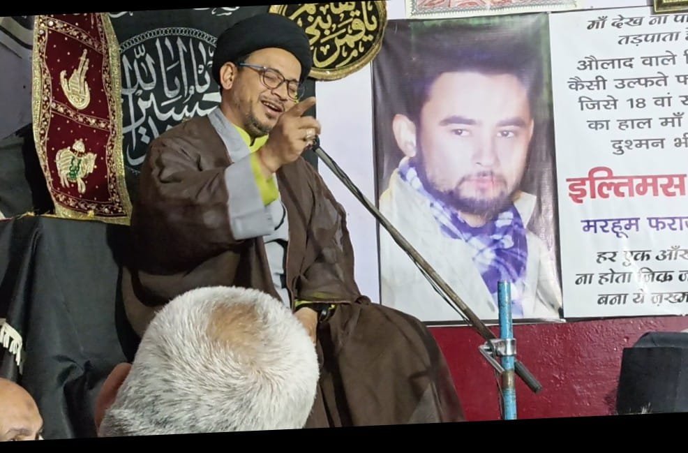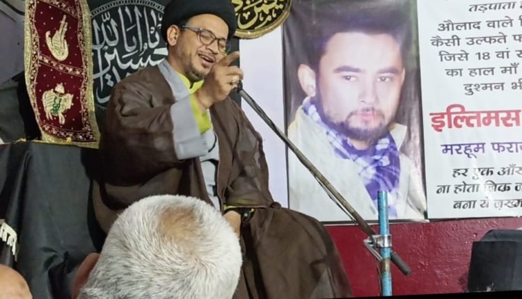 मौलाना ने कहाकी की यह बहिश्त ए जहरा इमाम बारगाह कभी उजड़ा दयार था अब यहां हुसैन और हुसैनी का जिक्र होता है।आज इंसान कर्बला कब्रिस्तान और इमाम बरगाहो को बेच कर खा रहा है।लेकिन अल्लाह वक्फ खोर को इसी जबान की वजह से मोमिन से मुर्तद बना देता है। मौलाना ने हज़रत इमाम हुसैन के पुत्र अली अकबर की शहादत का दर्दनाक मंज़र बयान किया जिसे सुन कर अजादार फफक कर रो पड़े ।इस मौके पर इमाम बारगाह बहिश्ते जहरा में भारी तादाद में अजादार शामिल हुए।