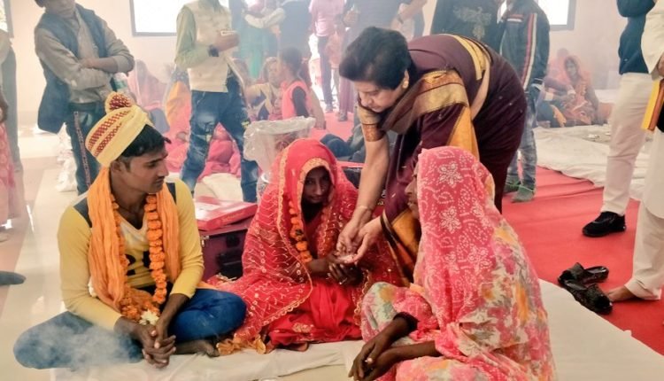 लखनऊ। नगर निगम के द्वारा औरंगाबाद स्थित कल्याण मंडप में शुक्रवार को सामूहिक विवाह में 34 जोड़ों का विवाह विधि विधान से संपन्न कराया गया । जिसमें महापौर संयुक्ता भाटिया ने वर वधू को पायल विछिया देकर आशिर्वाद प्रदान किया। नगर आयुक्त इन्द्रजीत सिंह के अथक प्रयासो से मुख्यमंत्री सामूहिक विवाह योजना के अंतर्गत नगर निगम द्वारा समाज कल्याण विभाग के सहयोग से सभी जाति व धर्म के 34 जोड़ों का विवाह पूर्ण विधि-विधान से सम्पन्न कराया गया। ज्ञात हो योजना में निर्धारित निर्देशो का अनुपालन करते हुए प्राप्त आवेदनों की जाँच कर विवाह योग्य 34 पात्र जोड़ो को चयनित किया गया था। योजना में अनुसूचित जाति के 24, पिछड़ी जाति के 2, सामान्य 4, अल्पसंख्यक वर्ग के 4 जोड़ो का विवाह कराया गया। यह जोड़े विवाह के लिए अपने परिवारजनो के साथ कार्यक्रम में सम्मिलित हुए। कार्यक्रम में मुख्य अतिथि के रूप में विधायक सरोजिनी नगर राजेश्वर सिंह के दो प्रतिनिधि उपस्थित हुए। मुख्य अतिथि के ओर से सभी वर-वधू को आशीर्वाद प्रदान करते हुए स्वयं एक-एक साड़ी उपहार स्वरूप प्रदान की गयी। कार्यक्रम में योजना के नोडल अधिकारी मुख्य कर निर्धारण अधिकारी अशोक सिंह उपस्थित रहे। इसके अतिरिक्त जोनल अधिकारी जोन-8 प्रज्ञा सिंह तथा सम्बन्धित राजस्व निरीक्षक व लिपिक सहयोग के लिए उपस्थित रहे। इसके तत्पश्चात वैवाहिक कार्यक्रम में विवाहितों को उपहार तथा समस्त अतिथियों को भोजन कराकर कार्यक्रम सम्पन्न कराया गया।