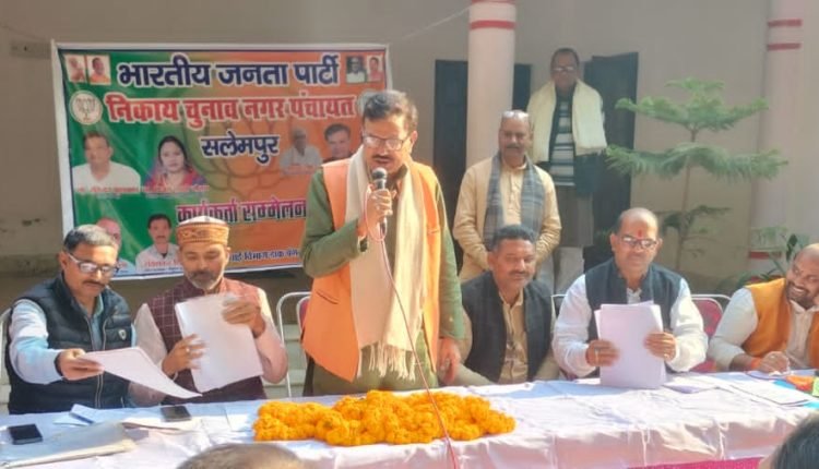देवरिया। भाजपा सलेमपुर द्वारा सिचाई विभाग स्थित डाक बंगले पर कार्यकर्ता सम्मेलन का आयोजन किया गया। कार्यक्रम को संबोधित करते हुए भाजपा जिलाध्यक्ष अन्तर्यामी सिंह ने कहा कि इस नगर निकाय चुनाव में बूथ संयोजको की भूमिका अहम है। उन्होंने कहा कि नव मतदाता सम्पर्क,प्रबुद्ध वर्ग के लोगो का सम्मेलन कराना है।अनुसूचित वर्ग के लोगो की टोली,सामाजिक सम्पर्क प्रमुख,अल्पसंख्यक सम्पर्क प्रमुख,अनुसूचित जनजाति सम्पर्क प्रमुख बनाकर घर-घर जनसम्पर्क करना है। संगठनात्मक संरचना को और अधिक मजबूत करते हुए सशक्त मंडल, सक्रिय बूथ समिति और पन्ना प्रमुख व पन्ना समिति की संरचना को सशक्त बनाना है।